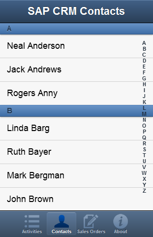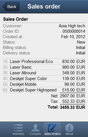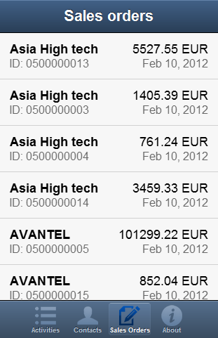 Now we have this basic app running we can start adding functionality. Next to CRM Activities, the SAP Gateway demo systems offers access to other business data like CRM Accounts and Sales Orders. By adding models, stores, views and navigation we can create a more advanced SAP mobile app. Check out the Sencha Touch 2 guides to see what’s possible. Here are some examples of views and detail screens that you can build: